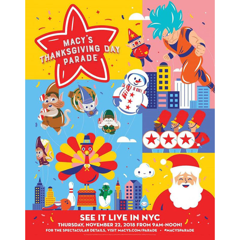It’s official. The world of Dragon Ball will soon be showcased on the national stage when the legendary hero, Goku, makes his debut in the 92nd annual Macy’s Thanksgiving Day Parade this year! Goku in his Super Saiyan Blue form from the anime series Dragon Ball Super will be the newest balloon in a lineup that is populated with other iconic characters such as Charlie Brown, Spongebob Squarepants, and Ronald McDonald.